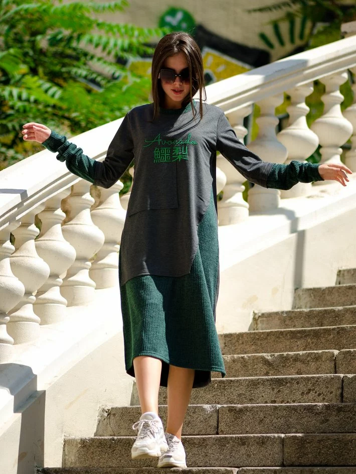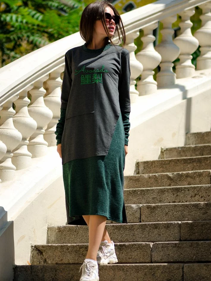 Сукня комбінована з двох різних трикотажних тканин. Сукня Міді
