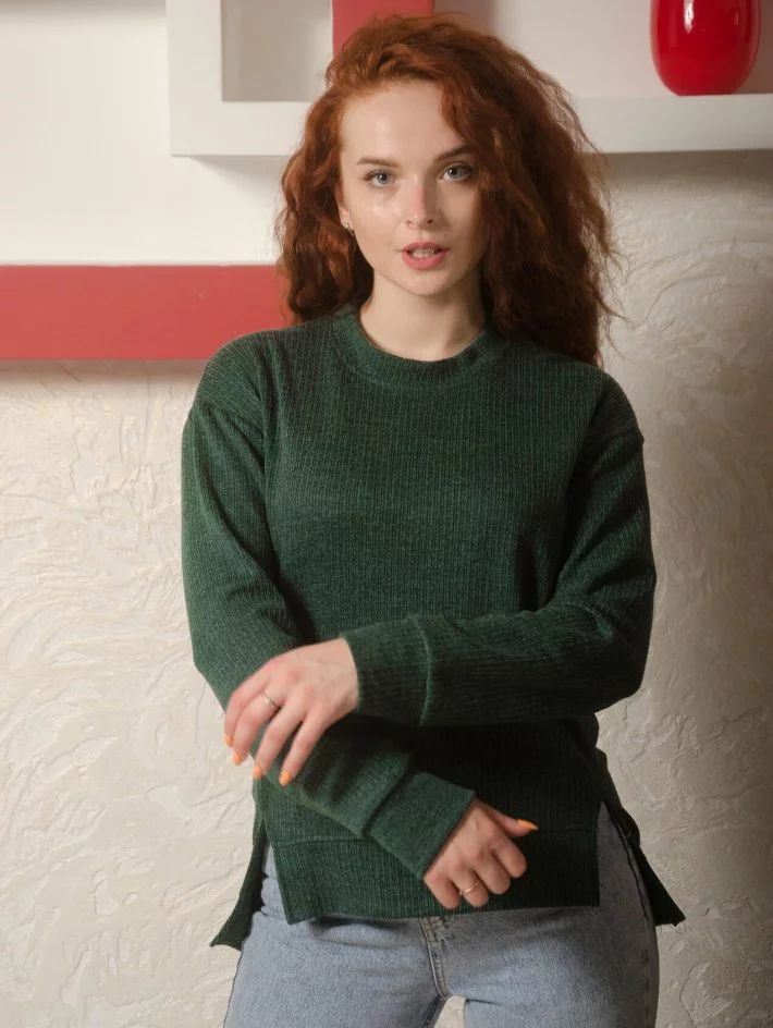 Светр з усунутим бічним швом, темно-зеленого кольору. Светр з