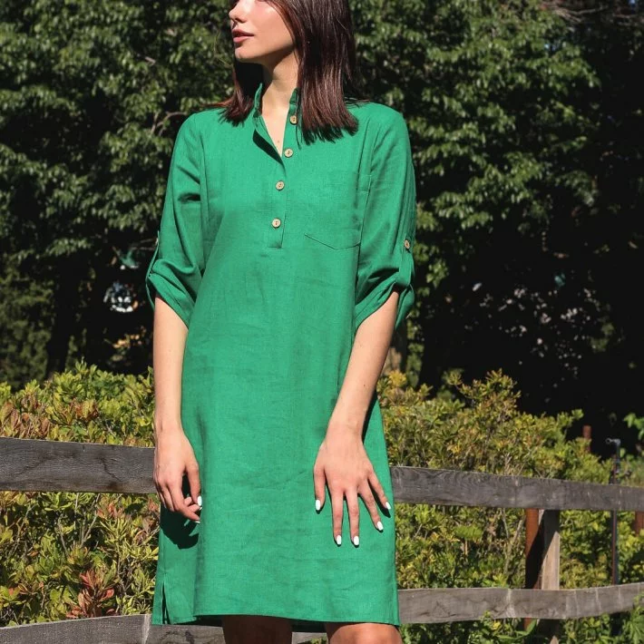 Сукня-сорочка прямого крою з натуральної лляної тканини, яка