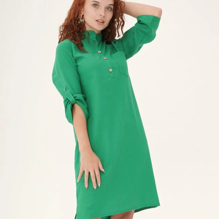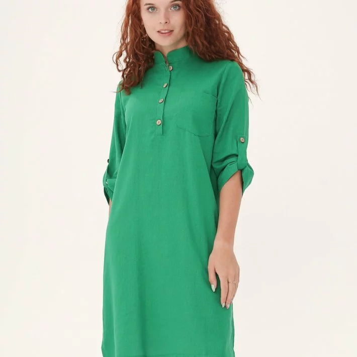 Сукня-сорочка прямого крою з натуральної лляної тканини, яка