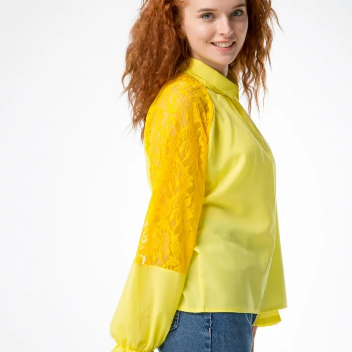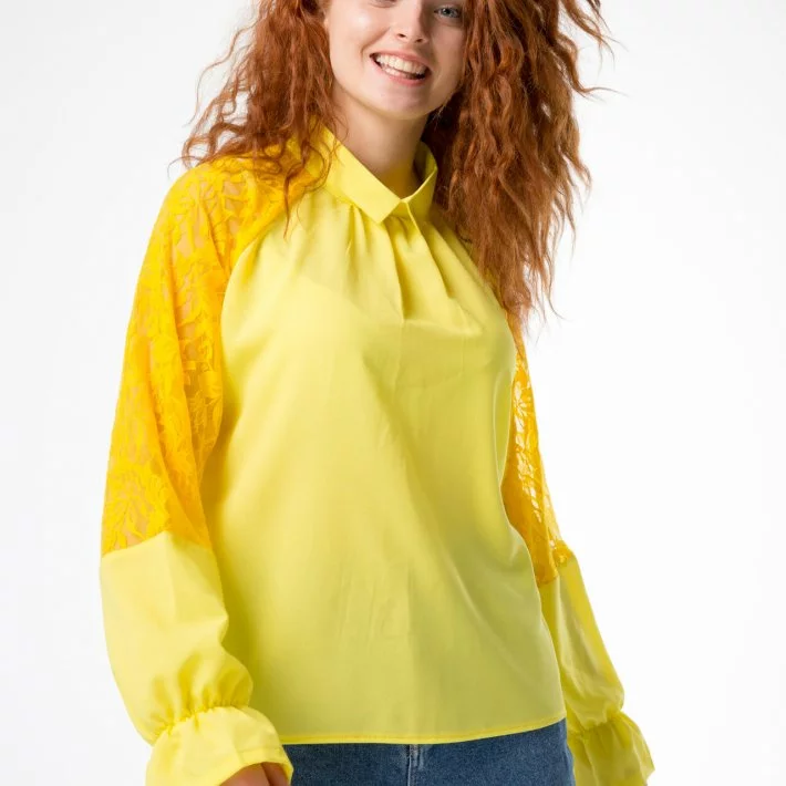 Блузка з рукавов регланом, виконана з креп-шифону, декорована