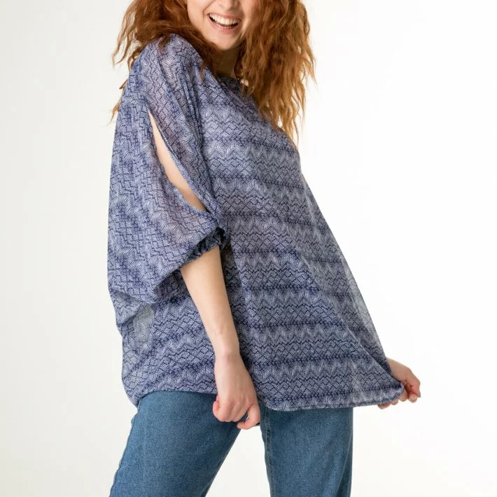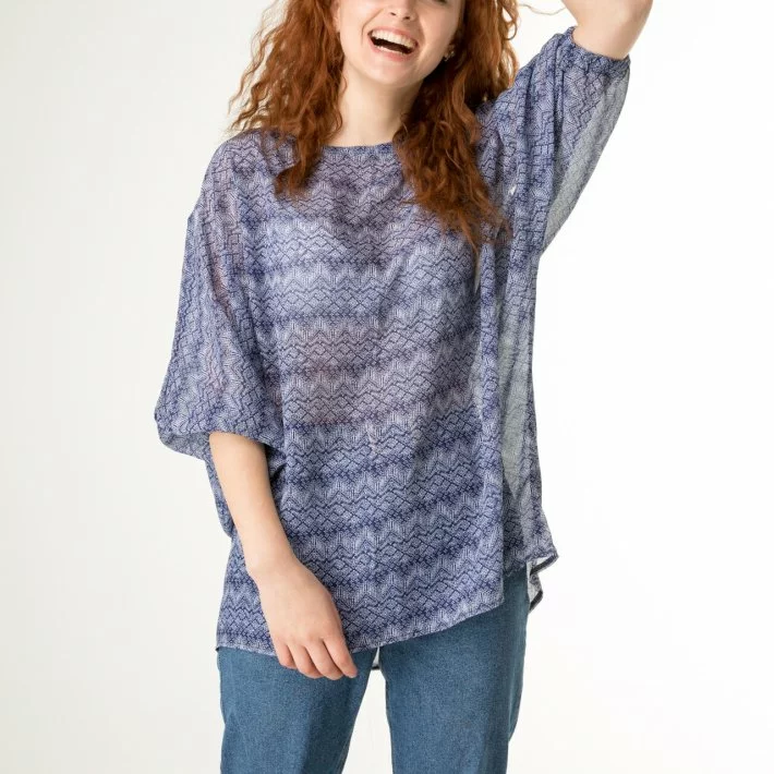 Блуза супер-оверсайз з оригінального шифону в дрібний малюнок.