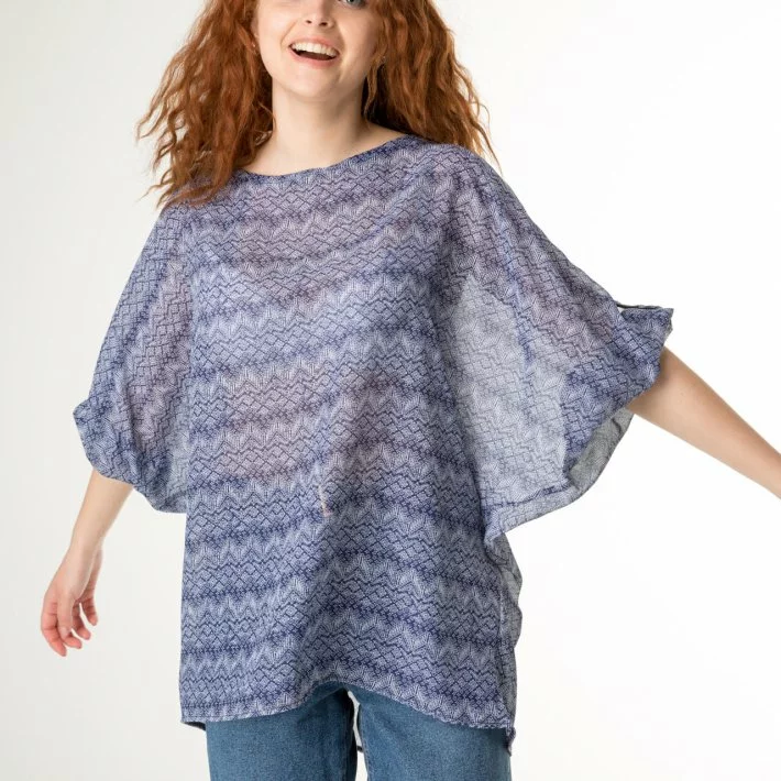 Блуза супер-оверсайз з оригінального шифону в дрібний малюнок.
