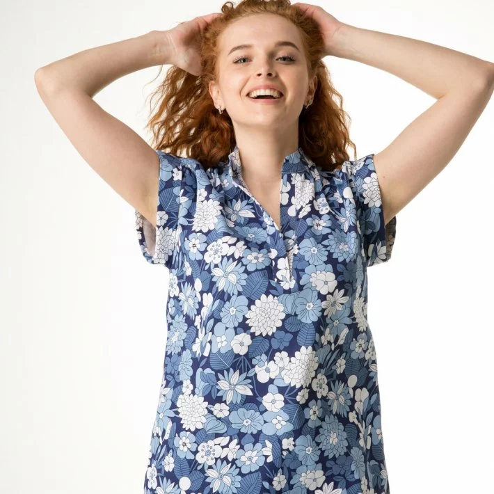 Блузка з полірованої бавовни з модним принтом. З відкритою