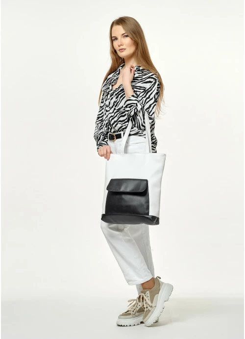 Женская сумка Sambag Shopper белая с черным