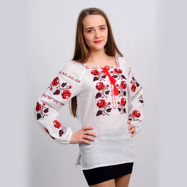 Эта модель вышиванки с узором из роз выполнена в традиционном