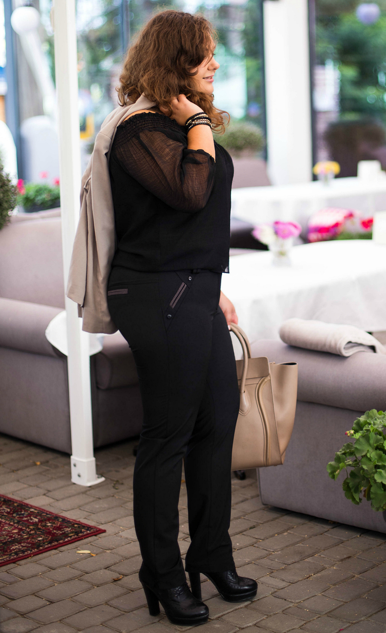 На фото черные. Модель размера 54, рост 165 см.