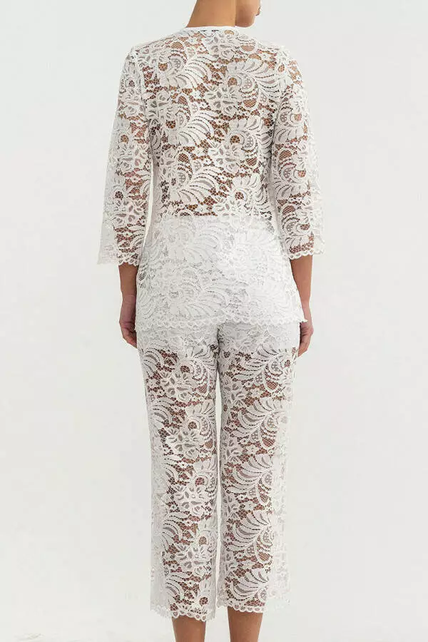 Женский костюм гипюровый брючный German Volf белый S(44)