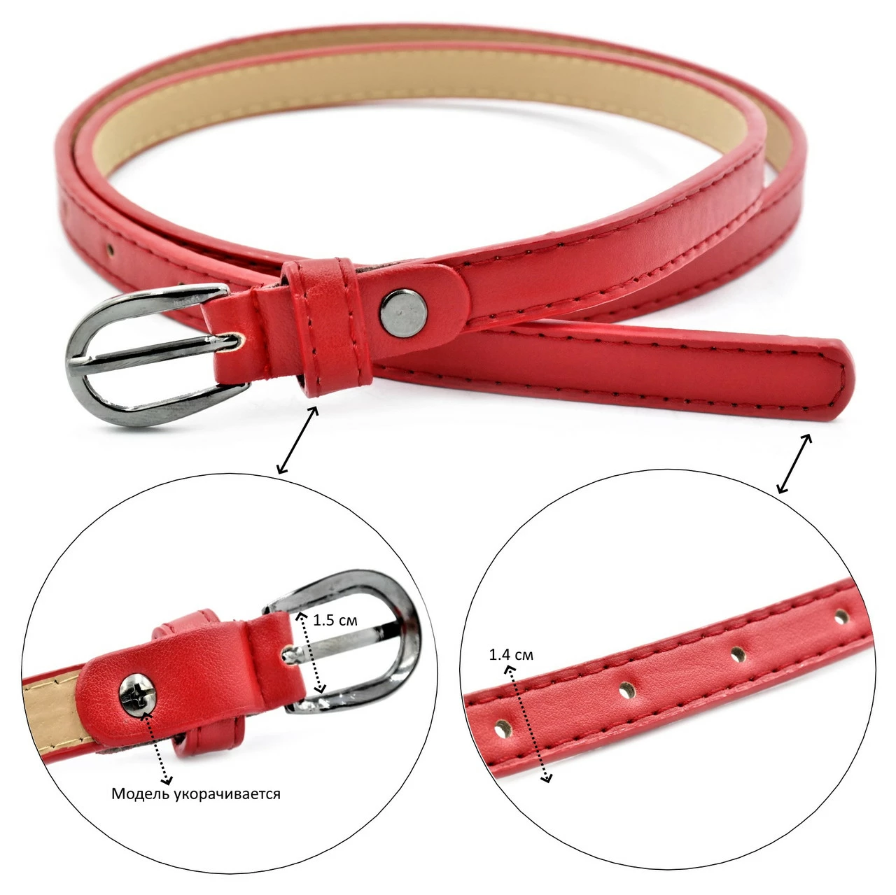 Ремень женский из экокожи, ширина 1,5 см, длина 110 см.