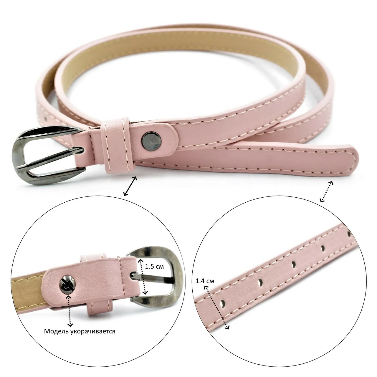 Ремень женский из экокожи, ширина 1,5 см, длина 110 см.