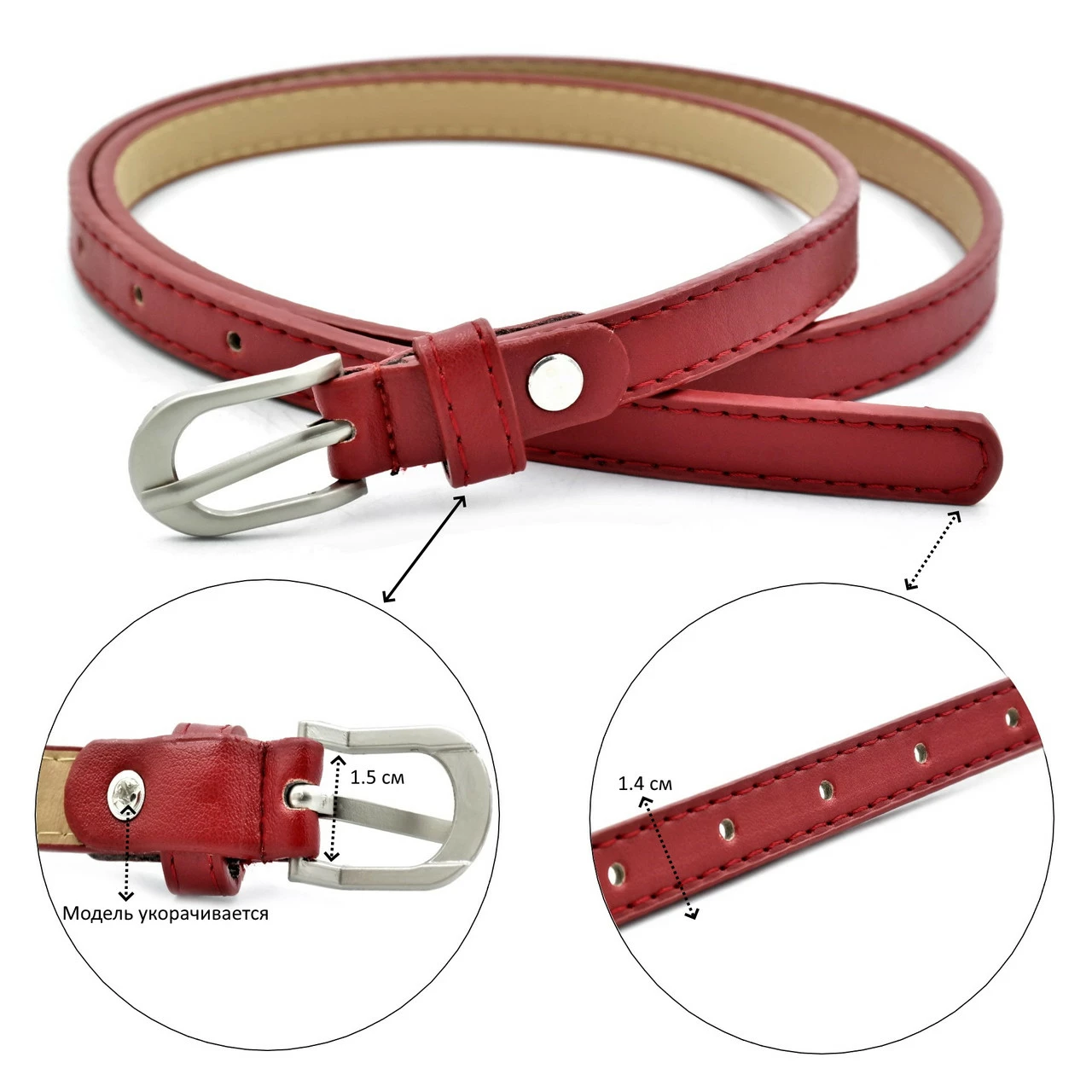 Ремень женский из экокожи, ширина 1,5 см, длина 110 см.