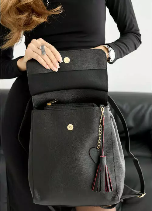Выполненный из экокожи, клапан рюкзака на кнопке, дополнительно