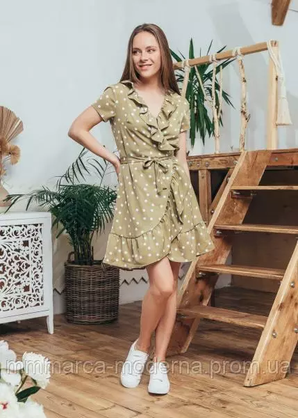 Женское летнее модное платье Эми Marca Moderna оливковое в горошек