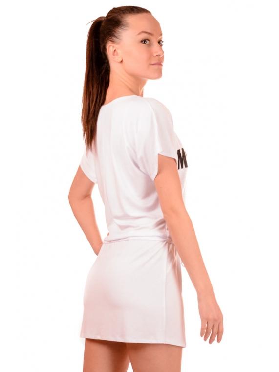 на талии. Полка и юбка изделия украшены термо-принтом высокого
