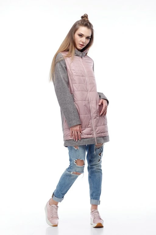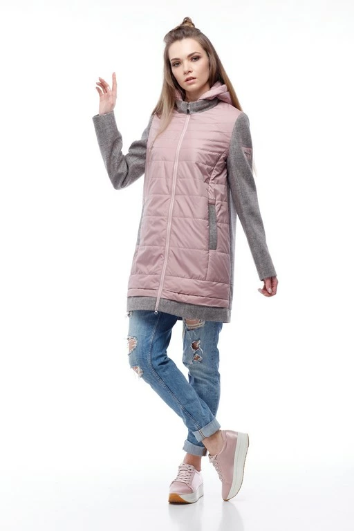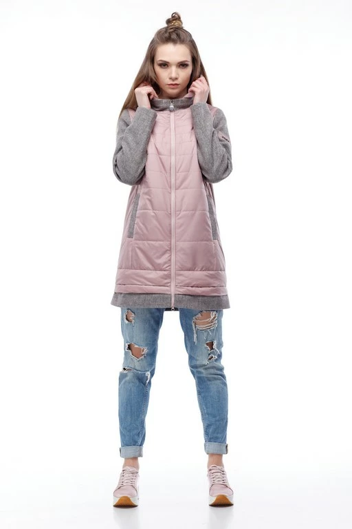Ультрасовременная комбинированная курточка – последний тренд будущей весны. Свобода движения, многообразие сочетаний с обувью и аксессуарами позволит своей обладательнице быть на вершине каждый день, удивлять, восхищать и очаровывать. Модное сочетание двух видов ткани в одной модели: рукава, спинка и воротник изделия из шерсти, передняя полочка и отстегивающийся капюшон из оригинально простроченной плащевки. Модель прямого кроя, многоступенчатый низ. Застежка по центру изделия и карман-листочка на молнии.