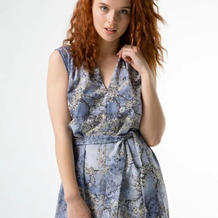 Сукня з незвичайною горловиною-миском, виконана з прінтованої