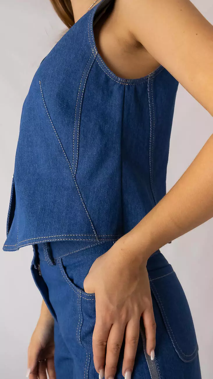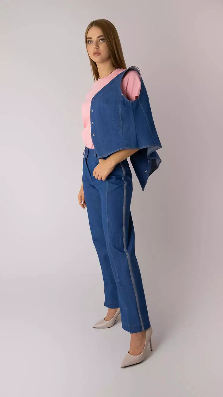 Жилет жіночій на кнопках з щільного котону темно-блакитного кольору.