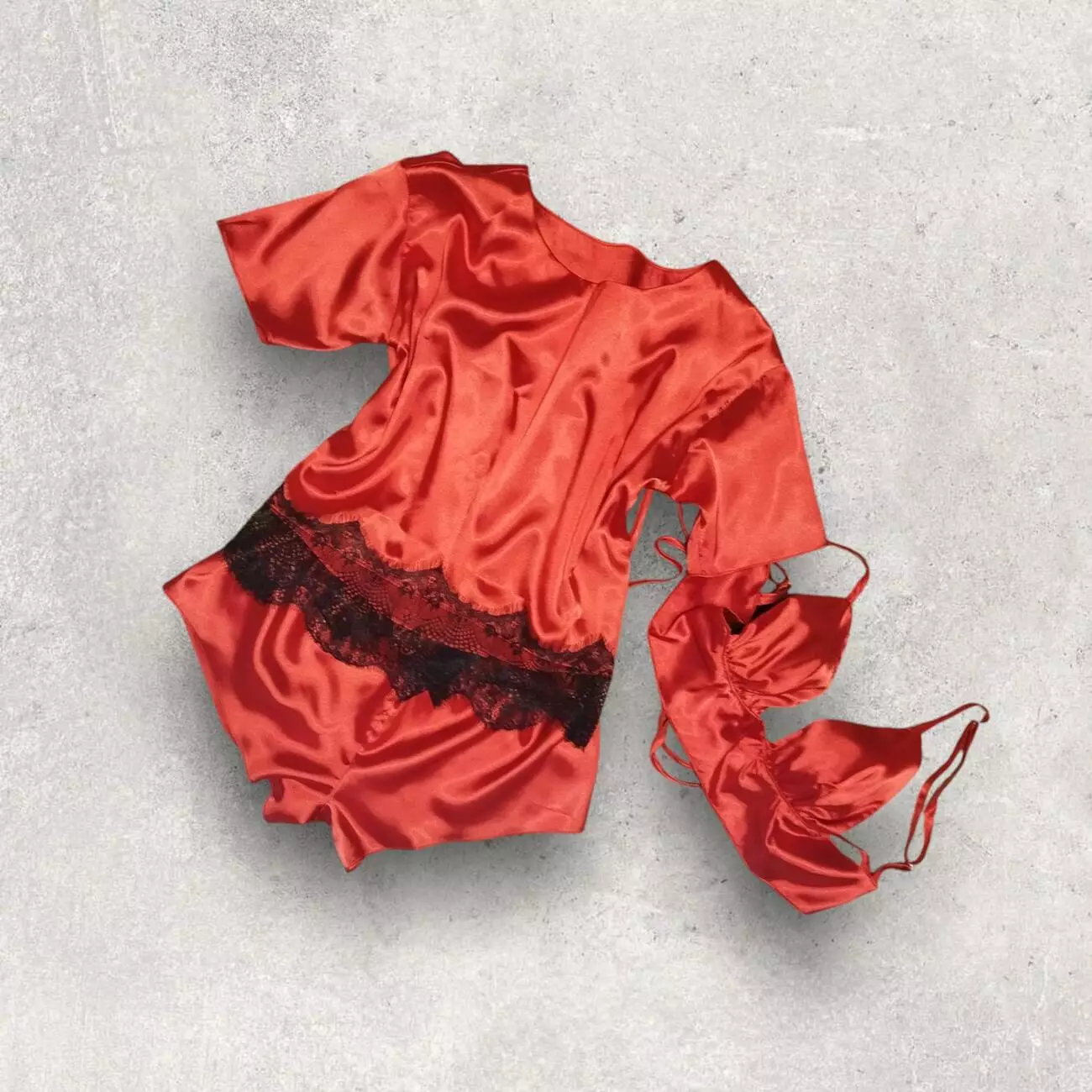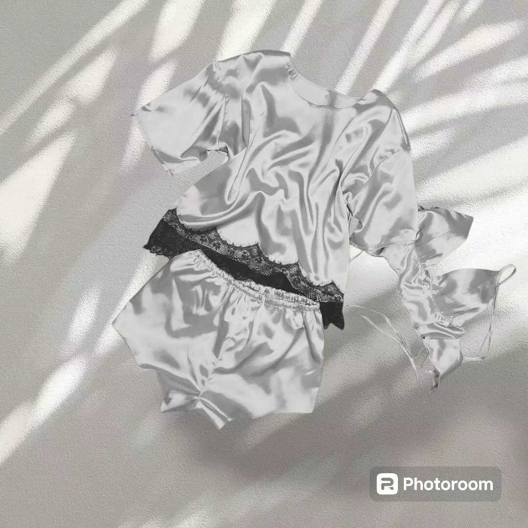 Жіноча атласна піжама трійка: бралет, шорти,