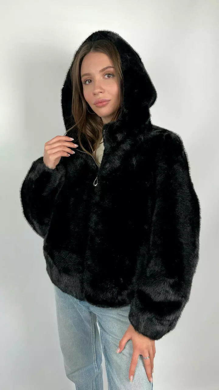 Жіноча еко-шубка з капюшоном