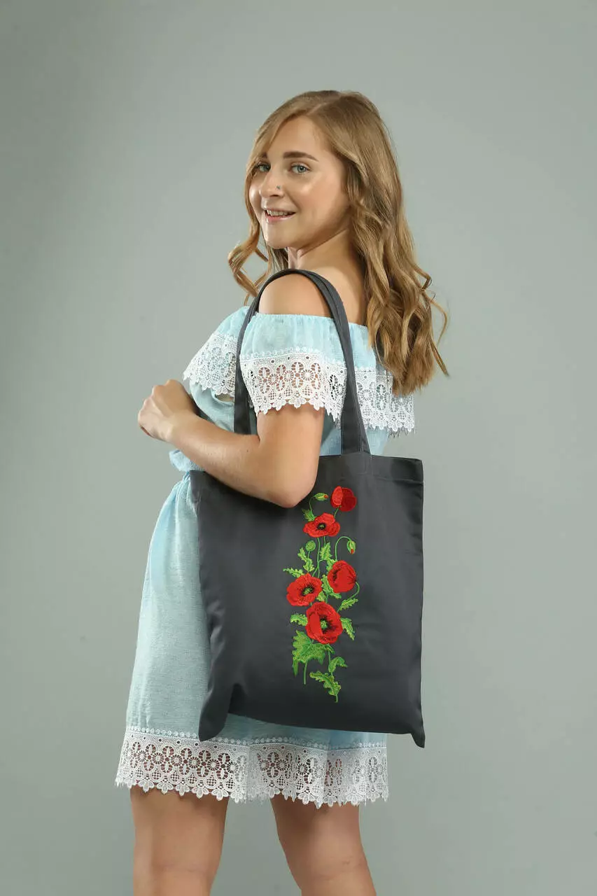 Він оригінальний, самобутній і багатогранний. Саме цим ми і керувалися при створенні цієї моделі. Ця модель по-своєму жіночна, і великі вишиті маки на сумці, це підкреслюють.