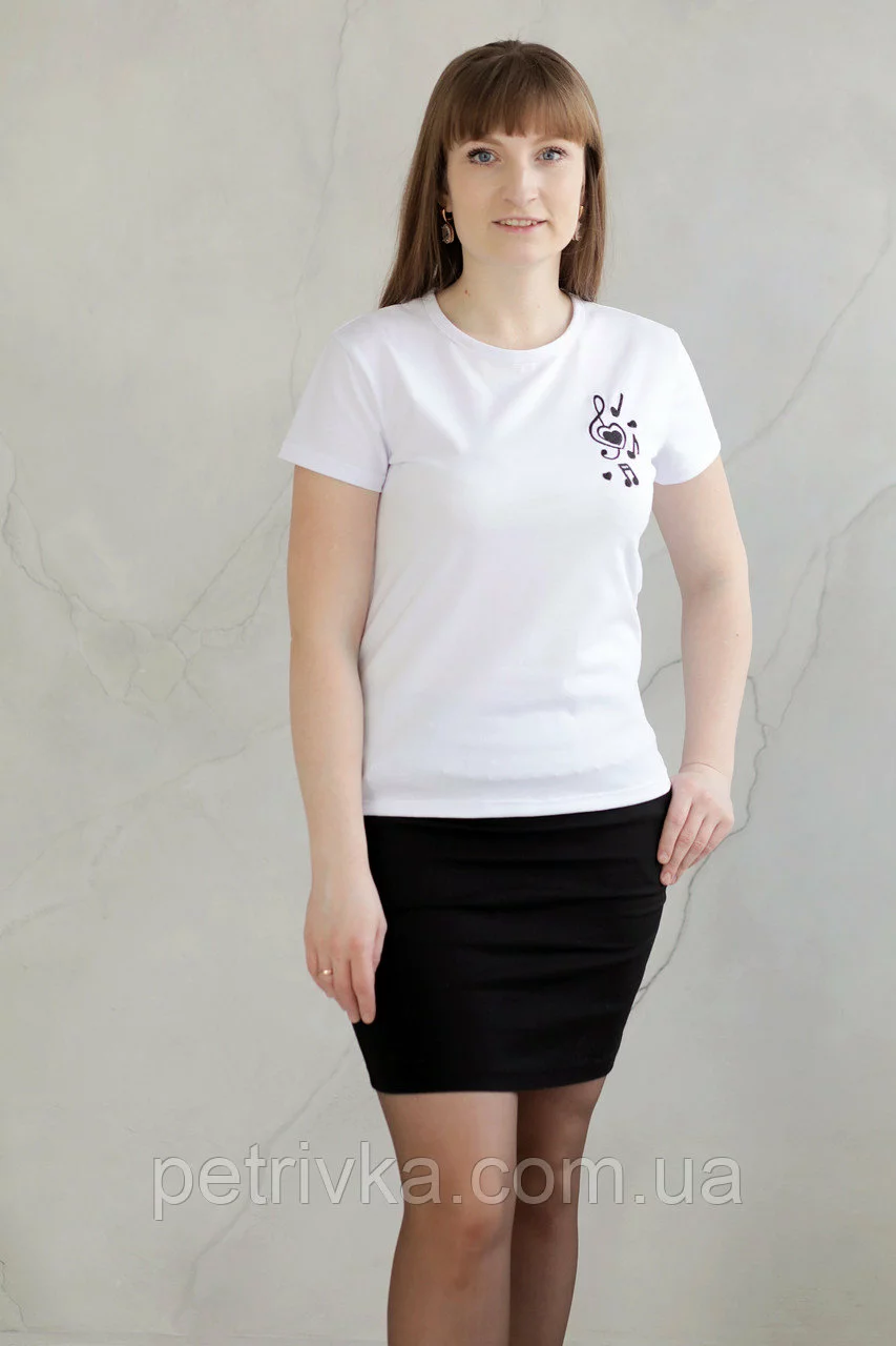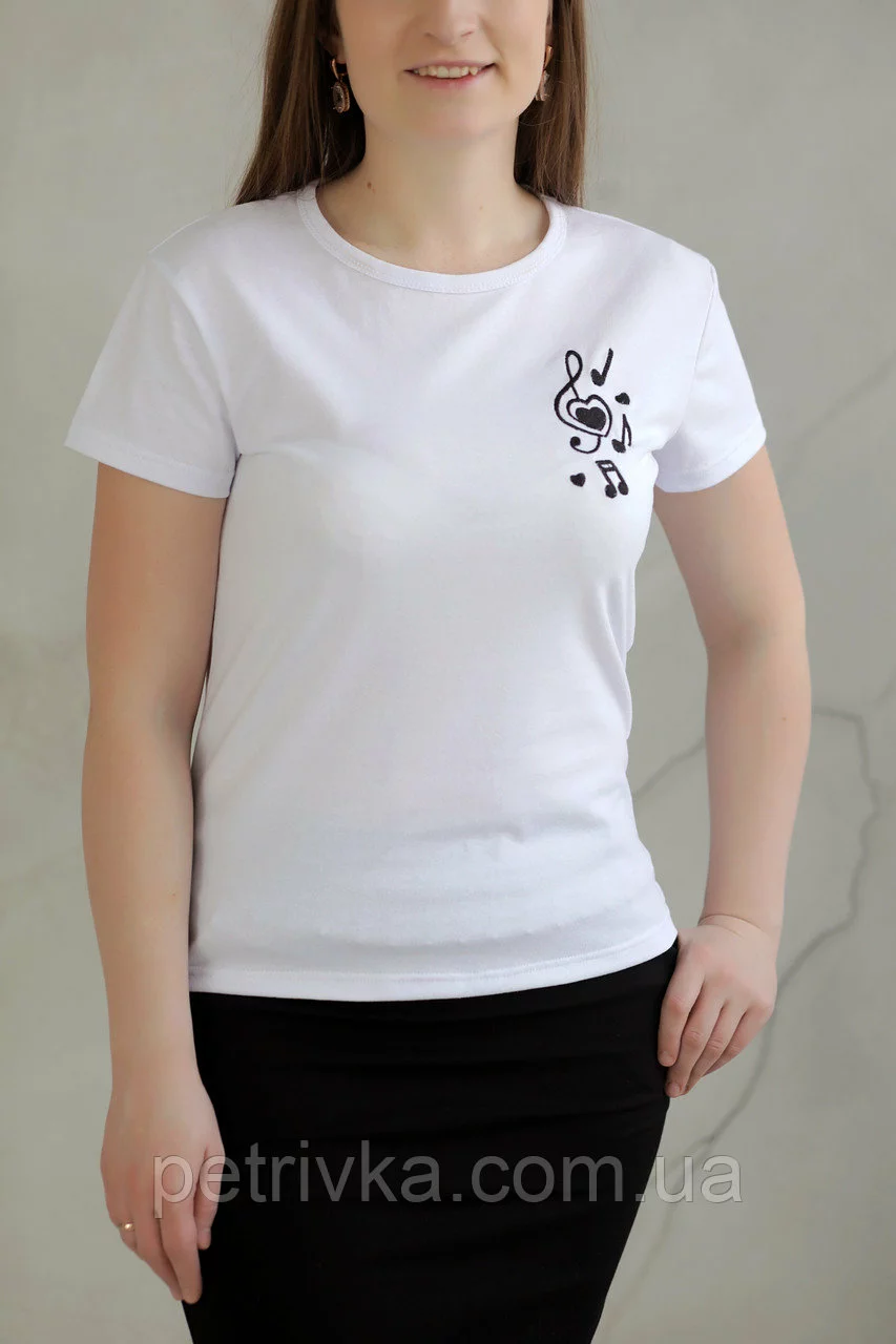 Жіноча біла футболка в стилі CASUAL, з вишитим принтом Скрипковий