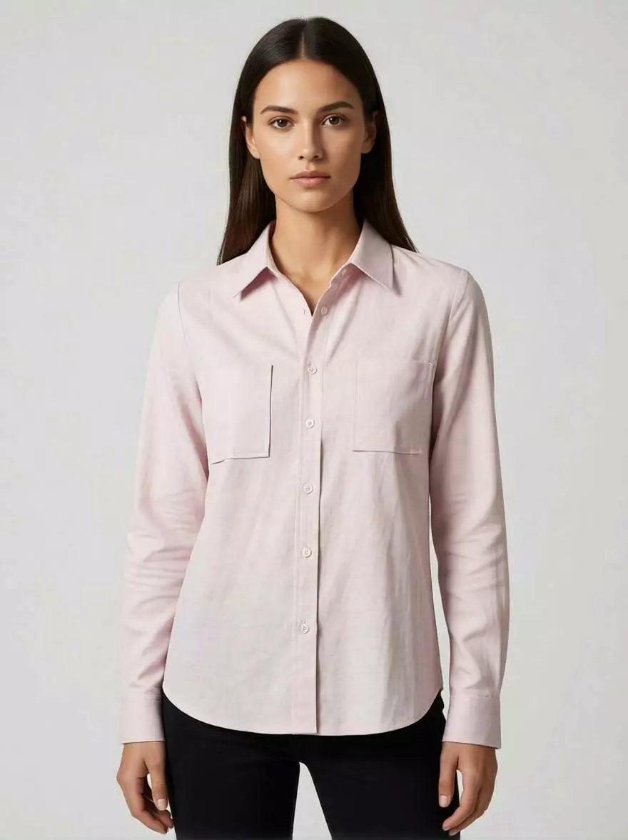 Витончена жіноча сорочка у ніжному пудровому кольорі. Цей відтінок є втіленням жіночності та елегантності, він легко вписується як у суворий офісний стиль, так і в романтичні повсякденні образи.