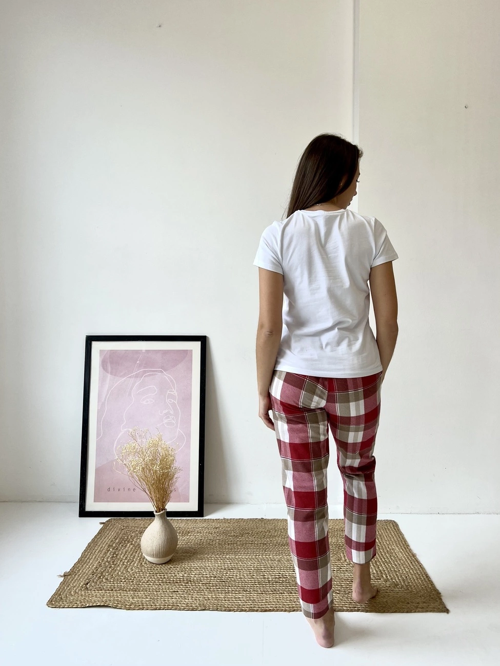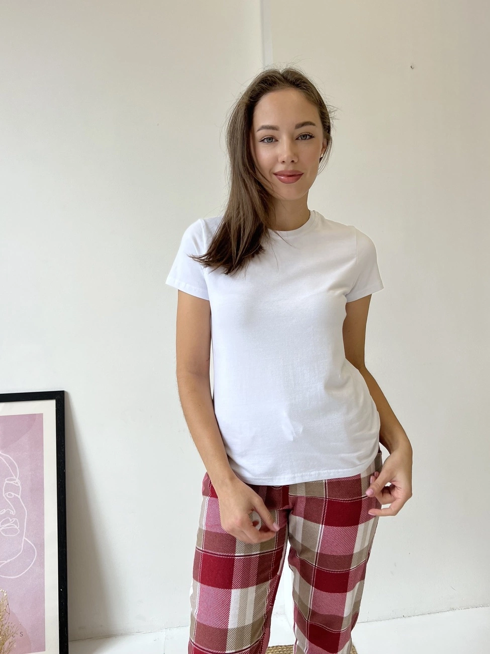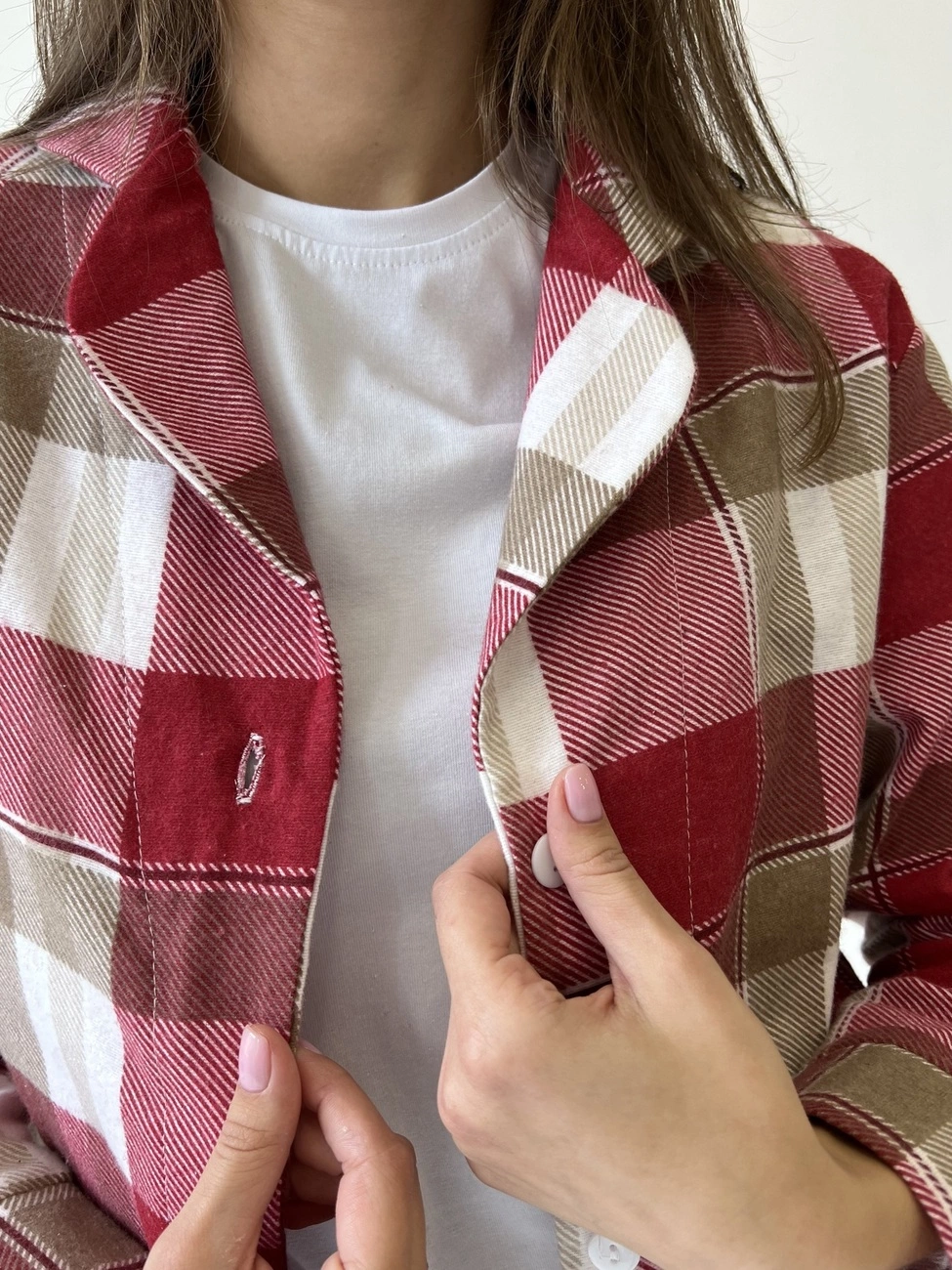 Жіноча піжама домашній костюм 3-ка у клітинку COSY (штани+сорочка+футболка) червоно/біла