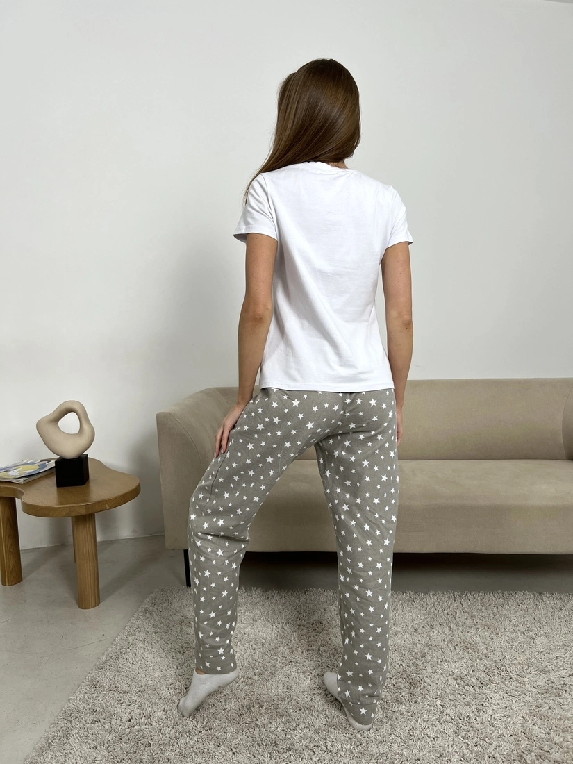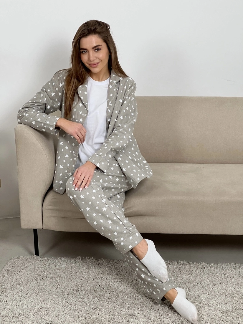 Жіноча піжама домашній костюм 3-ка з білими зірочками COSY (штани+сорочка+футболка) бєжева