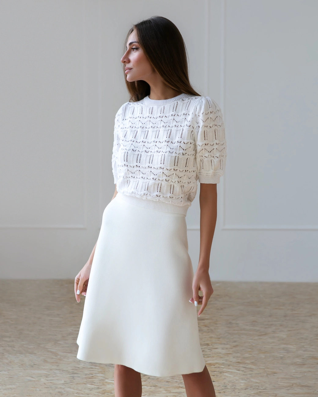 Спідниця дзвін виконана з ніжної натуральної бавовни. Спідниця