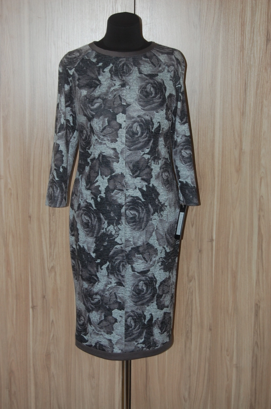 Стильна трикотажна сукня вільного крою, круглий виріз навколо шиї. Довгий рукав, ззаду потайний замок, шліца. Сукня на підкладці. Склад тканини 54% Віскоза, 43% Поліестер, 3% Еластан.