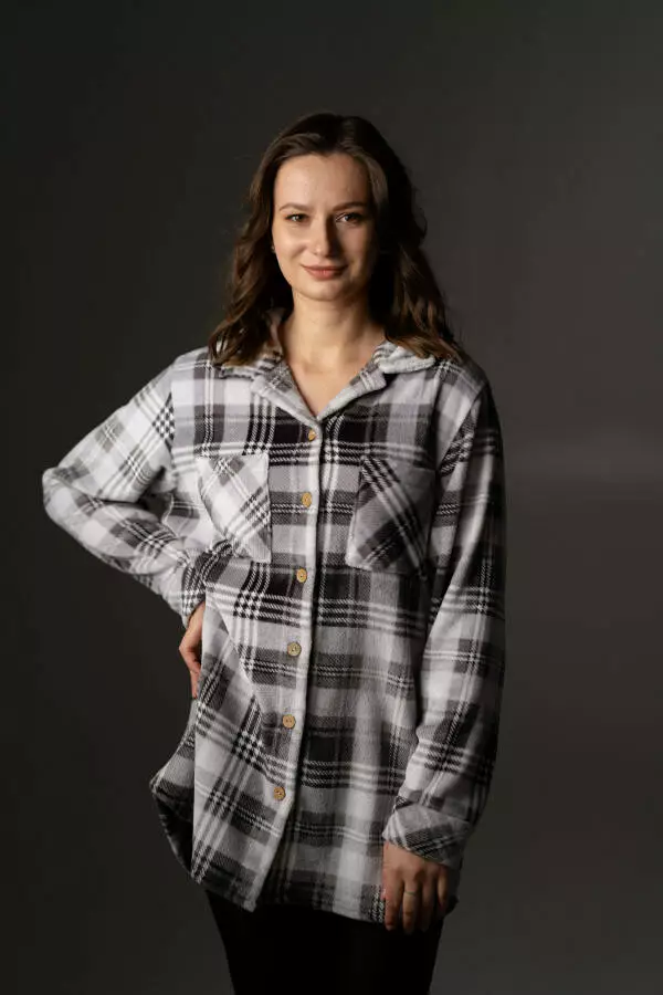 Жіноча тепла сорочка з велсофту, принт клітинка