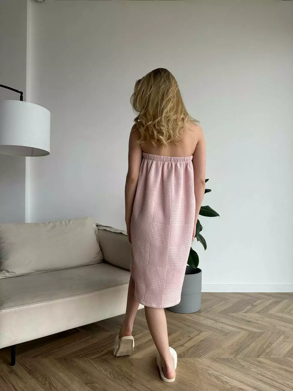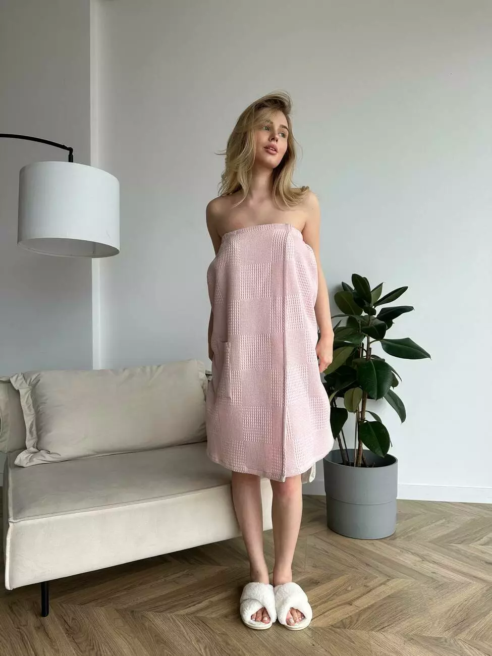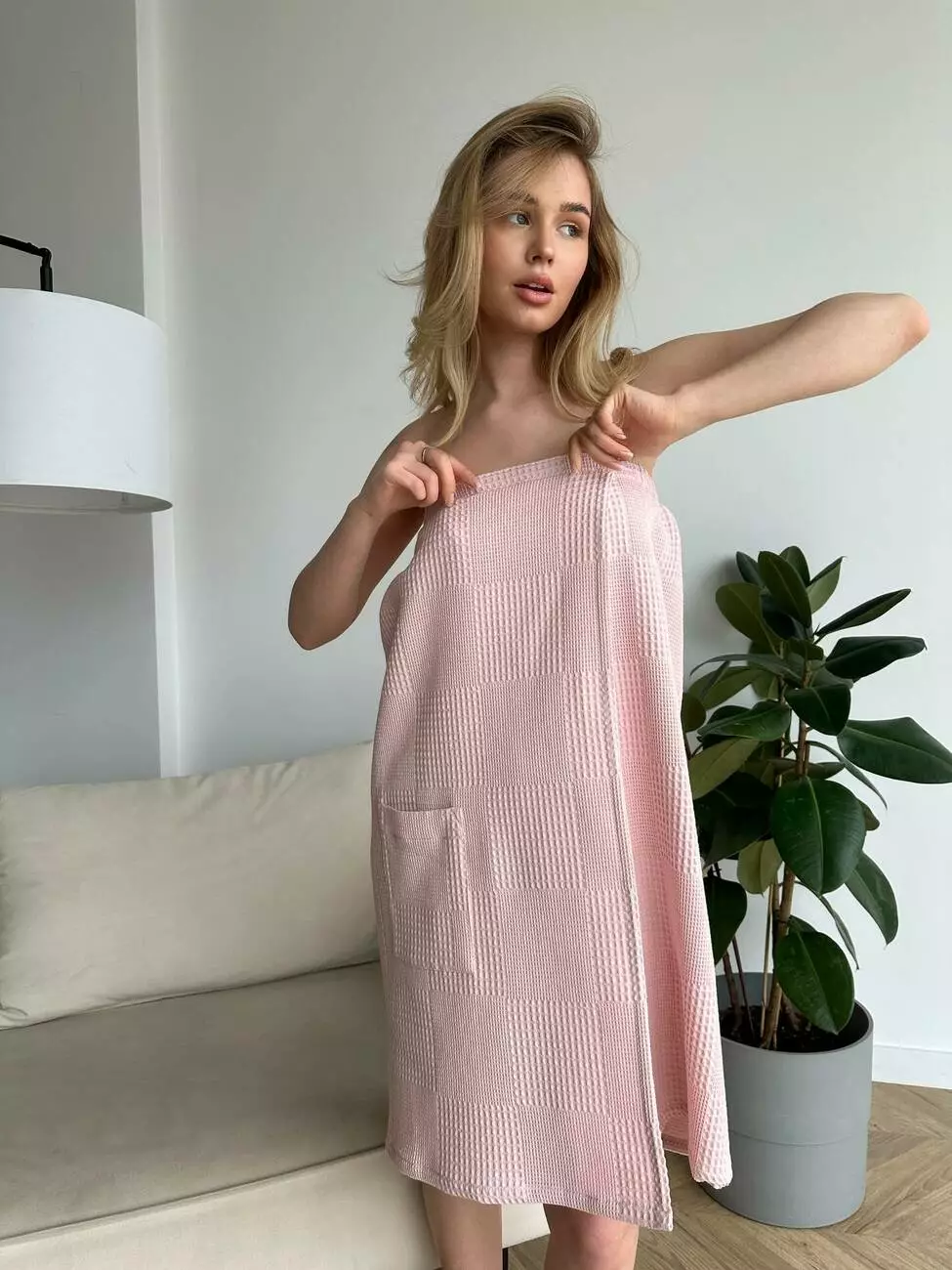 Жіноче парео для лазні/сауни, вафельна тканина на липучці.