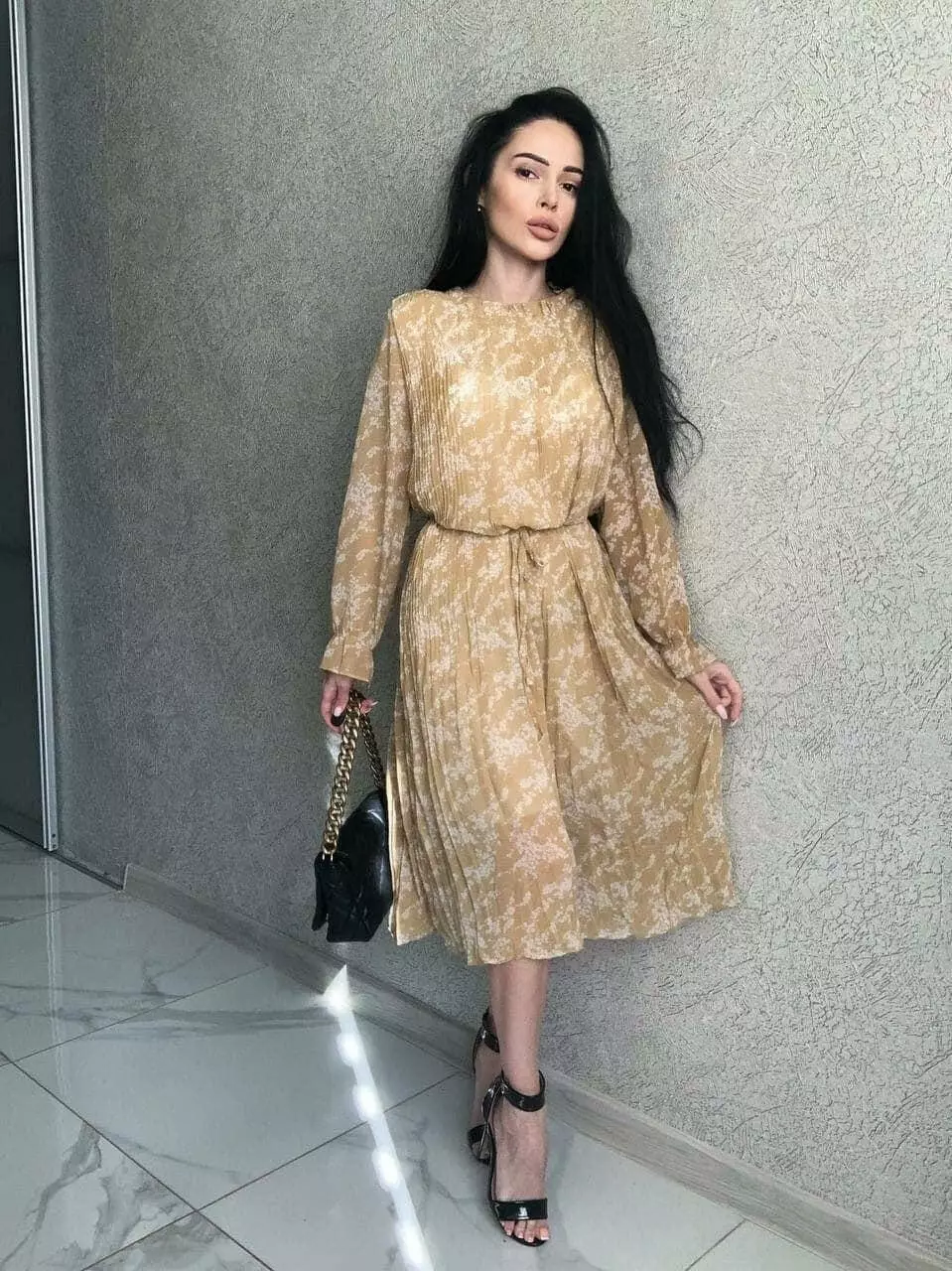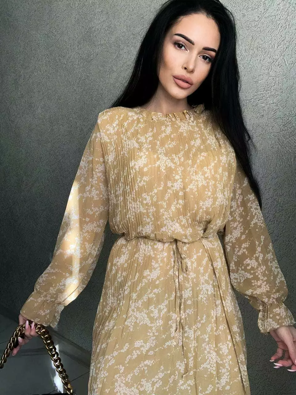 Жіноче шифонове плаття довгий рукав із квітковим принтом 6540