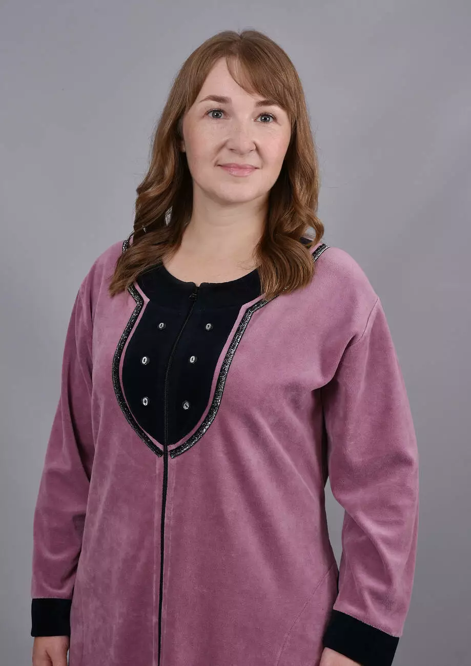 Про тканину: Бавовняний велюр - надзвичайно м'яка та приємна на дотик, матова трикотажна тканина. З лицьового боку з короткими ворсинками, з виворітного - гладка. Матеріал добре «дихає», гігієнічний. У складі тканини є еластан, завдяки йому тканина добре тягнеться і ідеально підходить для домашняго одягу.