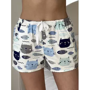 Жіночі Піжамні шорти COSY із сатину Котики Рибки молочний S310P