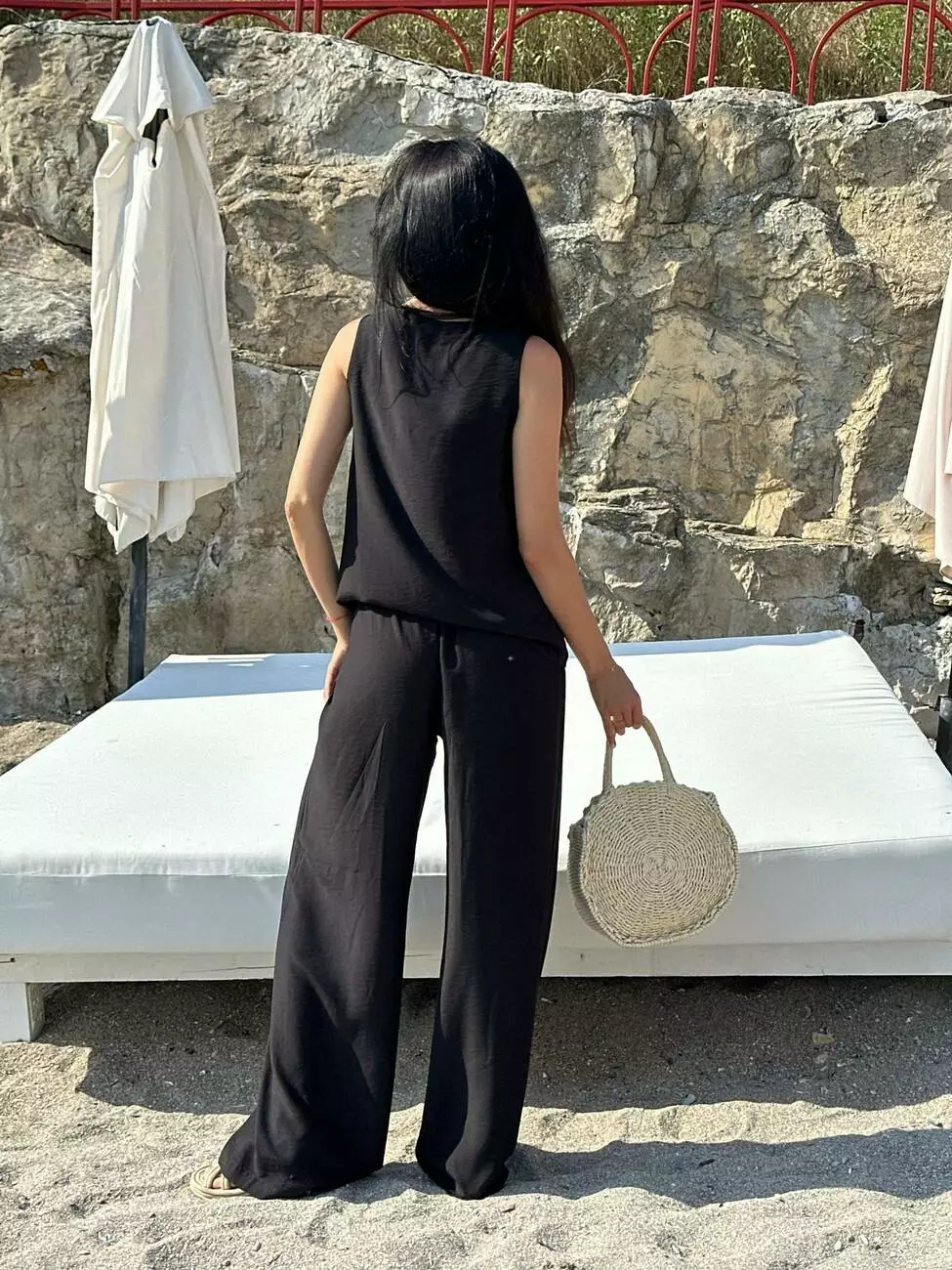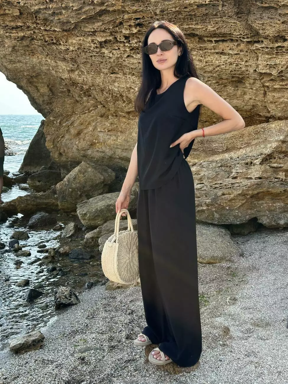 Чорні штани чудово міксуються з майками, топами, лляними сорочками чи блузами — створюючи стильний лук на кожен день. Незамінна річ у літньому гардеробі.