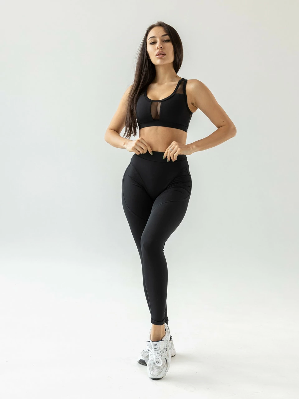 Жіночі спортивні лосини з імітацією трусів - чорний