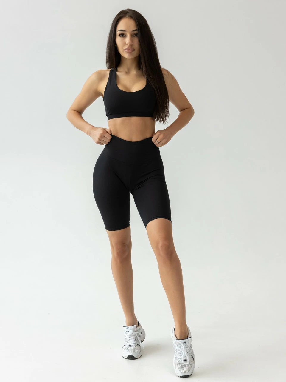Жіночі спортивні велосипедки для тренувань або активного відпочинку. Модель на високій посадці з поясом. Прикрашені абстрактними швами та імітованими трусиками, що вигідно підкреслює форму сідниць. Виріб із високоякісного біфлексу. М'який та еластичний матеріал, добре дихає та швидко відводить вологу, стійкий до інтенсивних навантажень.