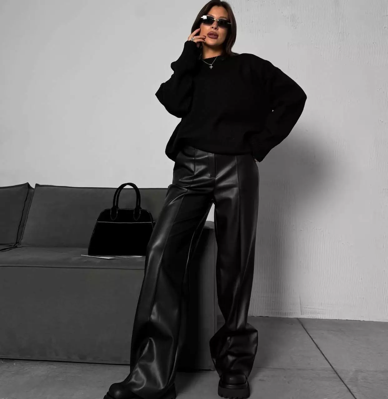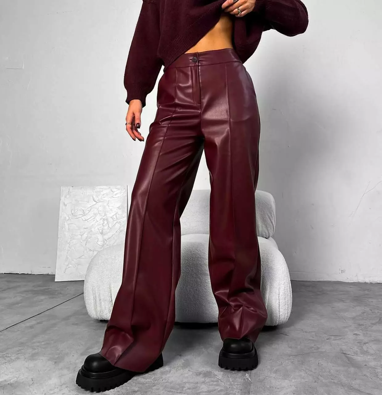 Жіночі теплі шкіряні брюки кльош на флісі зі стрілкою, розміри норма і батал