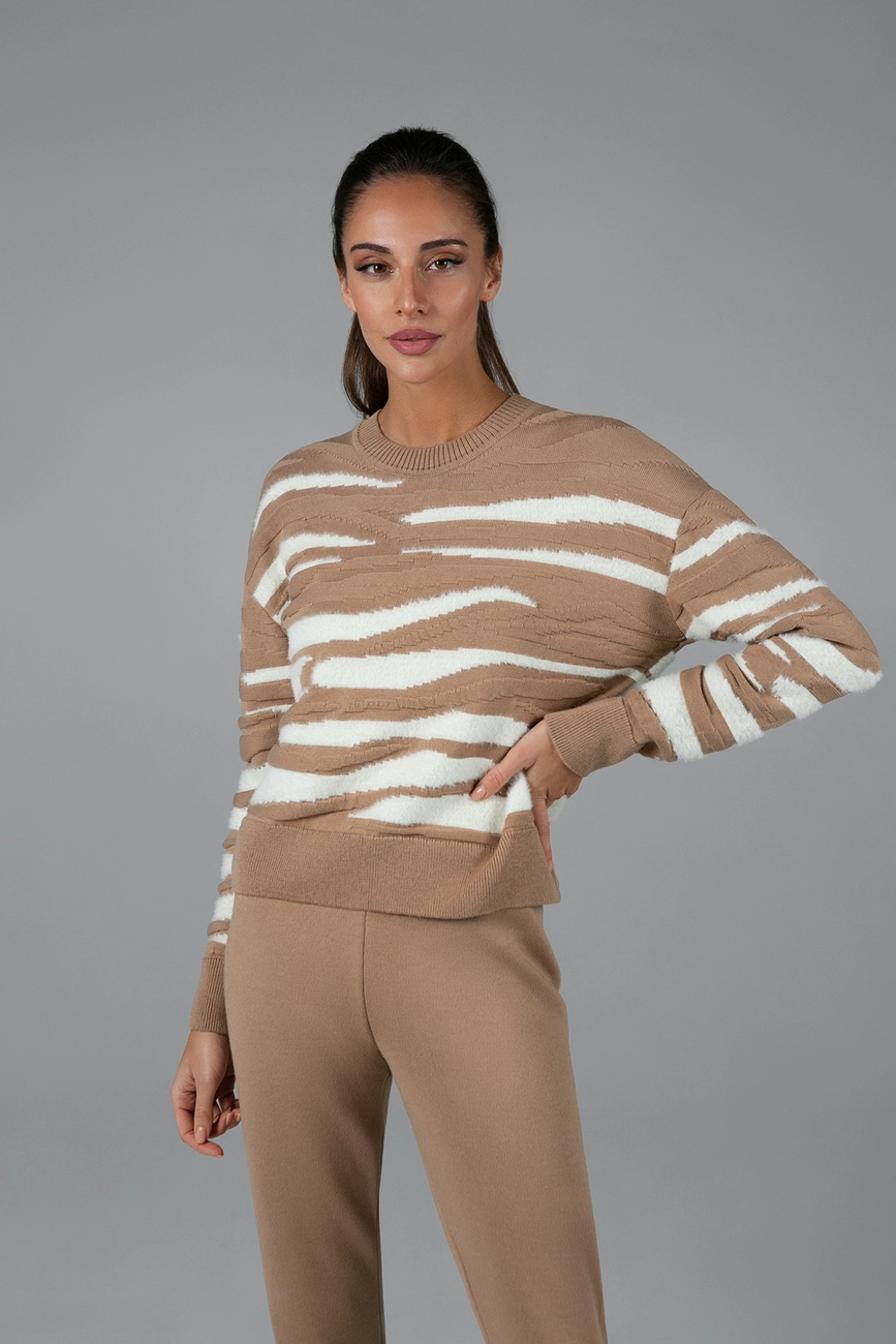 Оригінальний джемпер з фактурними вставками з пухнастої пряжі