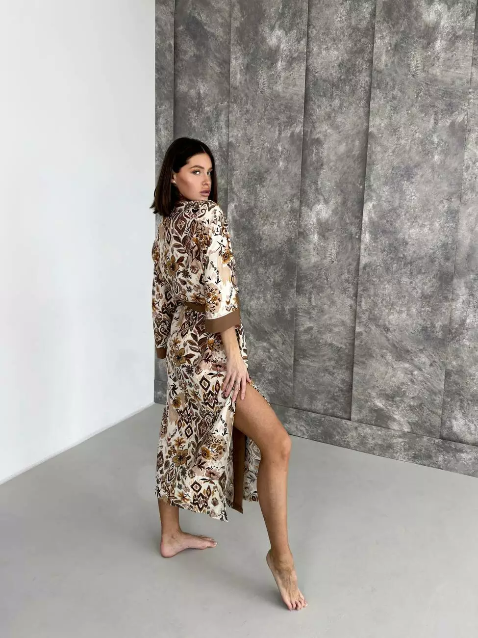 Цей халат – більше, ніж просто одяг. Це дотик ніжності, що огортає вас легким вітерцем, коли ви насолоджуєтеся ранковою кавою на терасі або мрієте під зоряним небом.