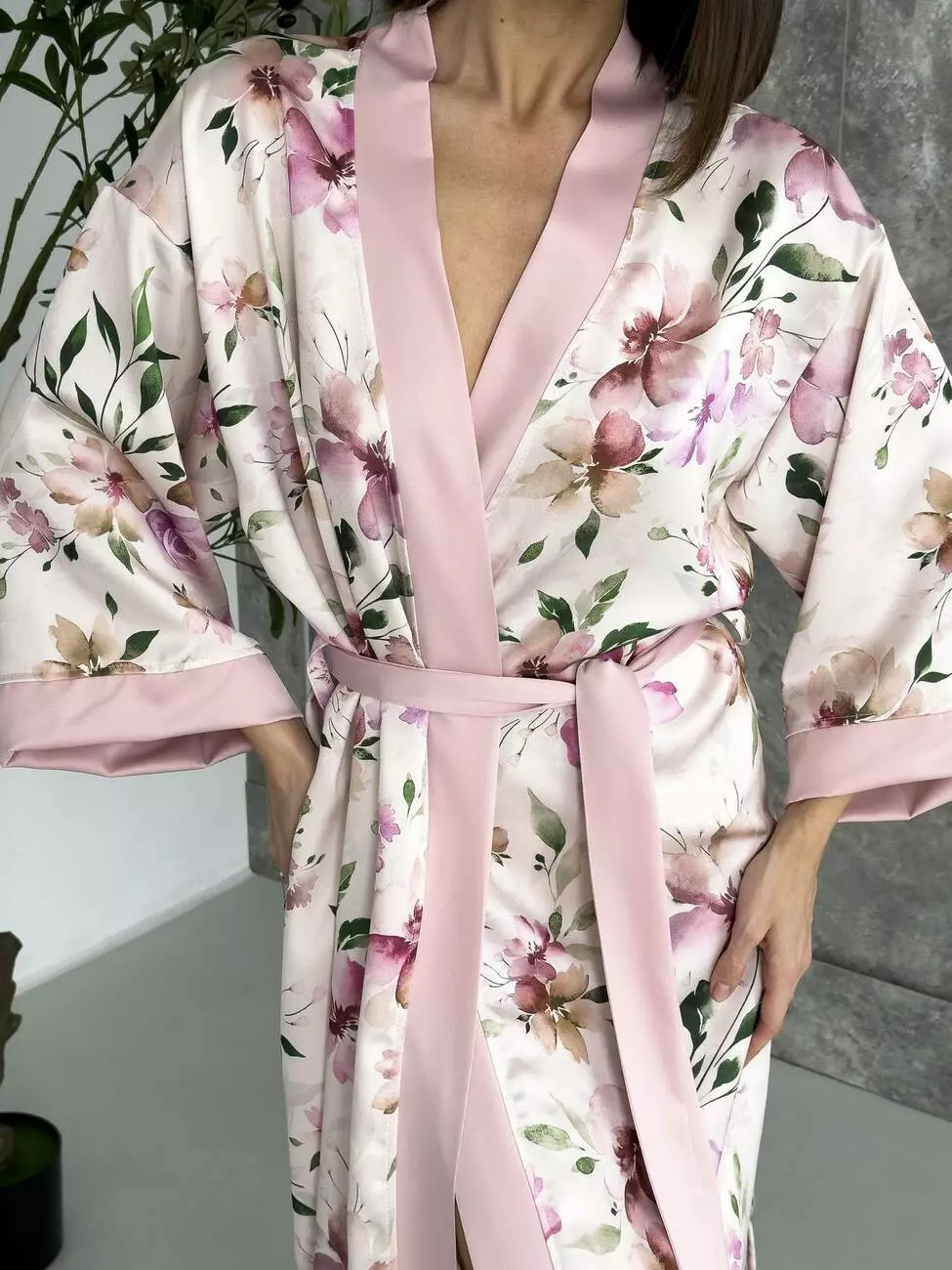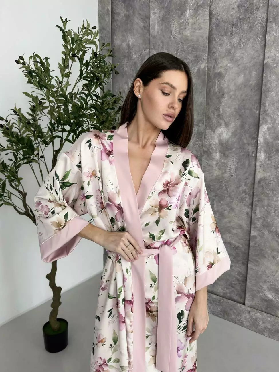 Ніжність весняного ранку: халат, що огортає розкішшю Уявіть ранок, коли перші промені сонця м’яко торкаються шкіри, а за вікном чути спів птахів. Саме таке відчуття дарує цей вишуканий халат із шовк-сатину.