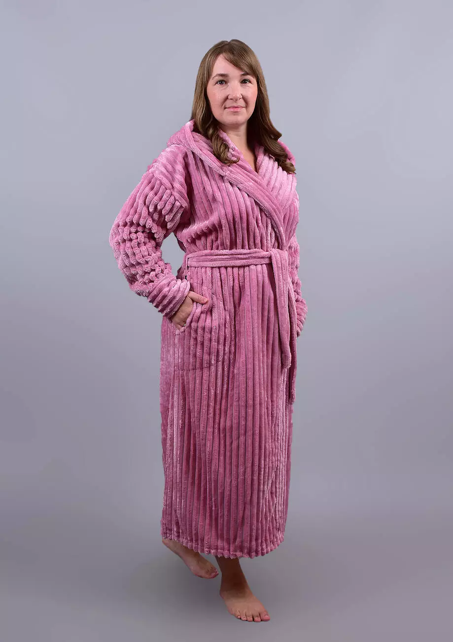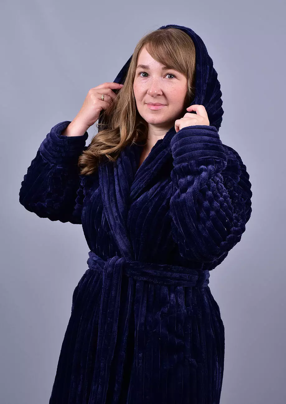 Витончений і затишний жіночий халат капюшоном із махри софт (Шарпей) від Stass Moda Україна – ідеальний вибір для домашнього релаксу. Ніжна текстура тканини забезпечує приємні тактильні відчуття, а стильний рельєфний дизайн додає вишуканості.