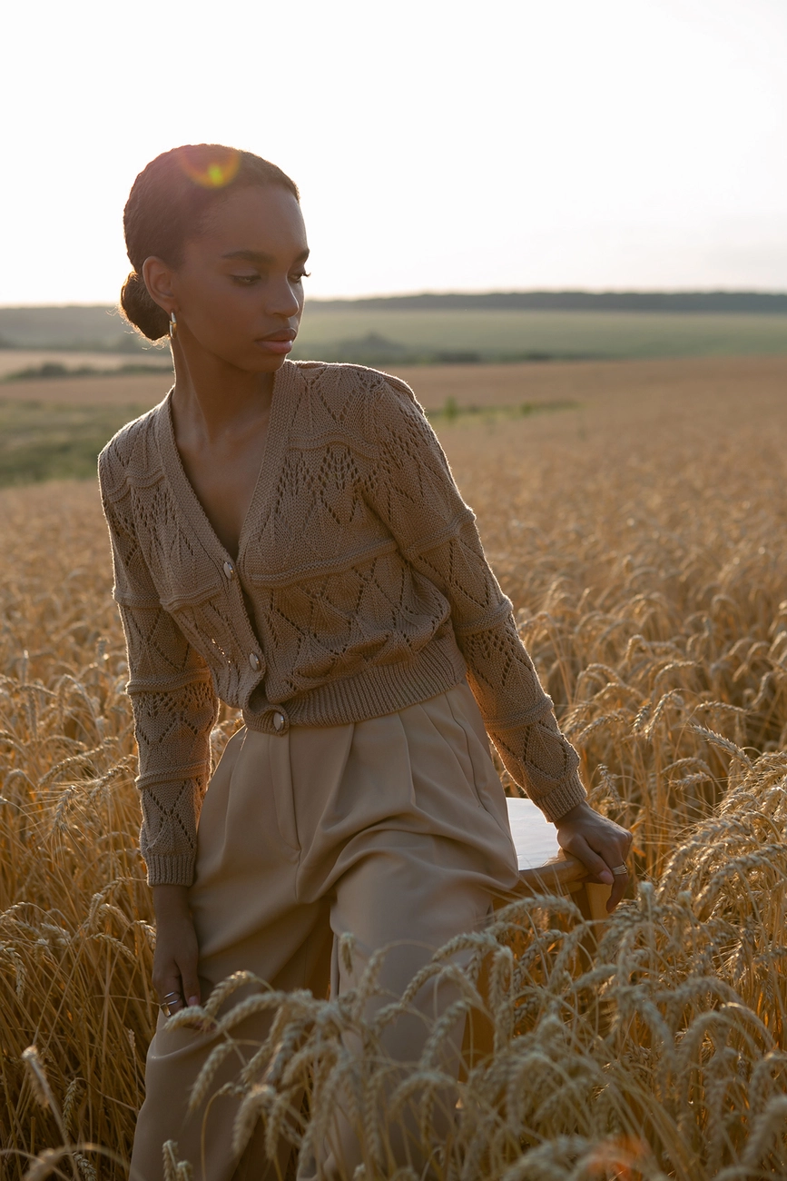 Легка повітряна бавовна, ніжний ажур, ґудзички з текстилем. Вишуканий та романтичний елемент образу.
