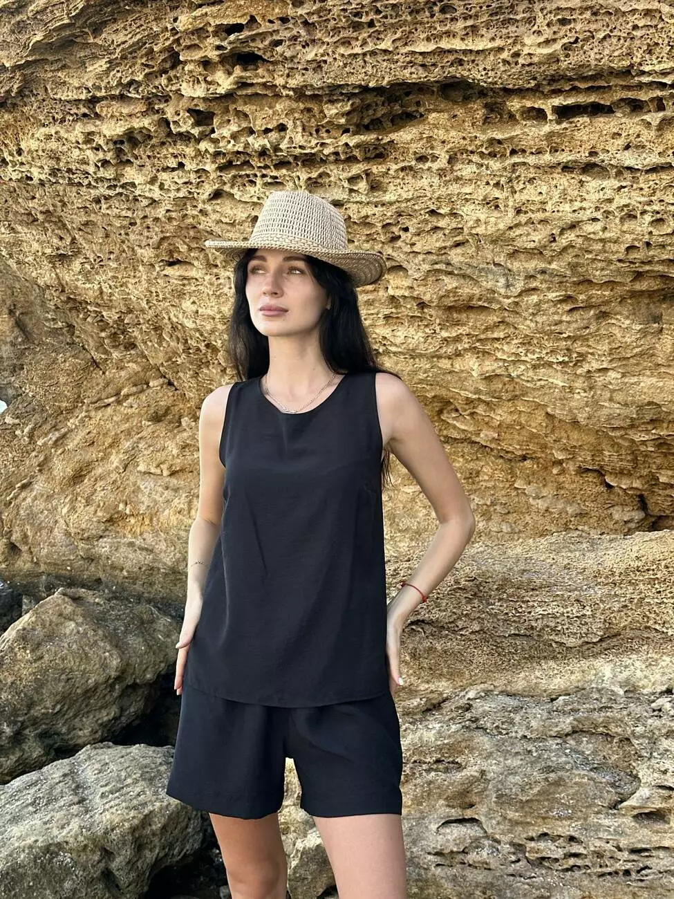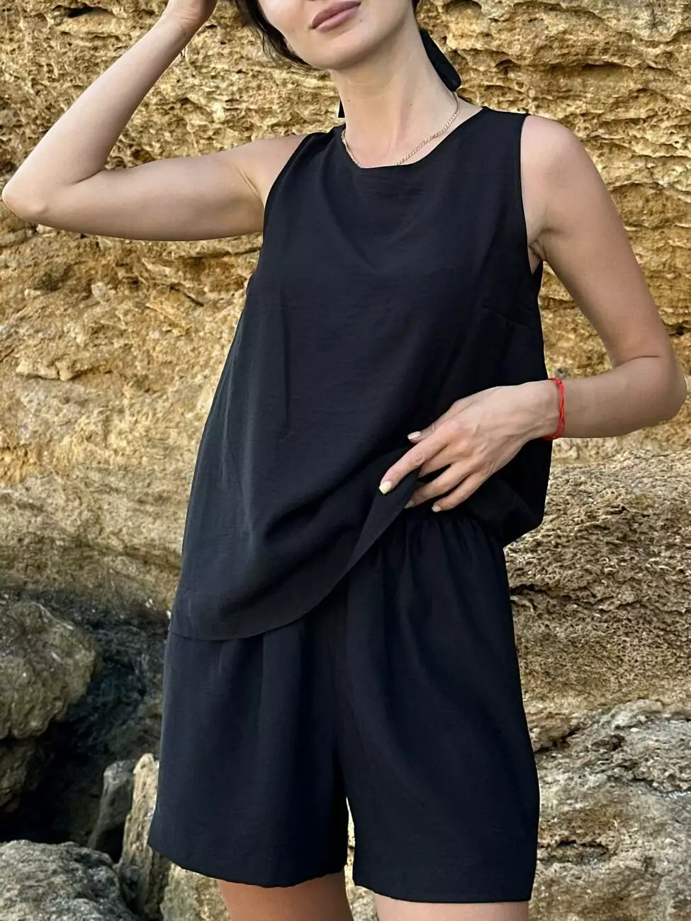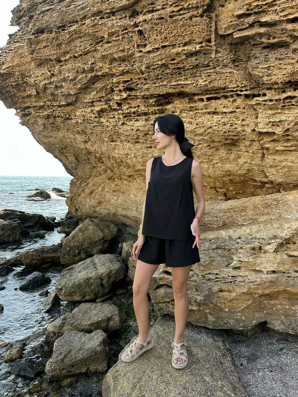 Базовий чорний комплект з колекції LUMIA — стильне рішення для літа, яке поєднує комфорт, елегантність і універсальність.