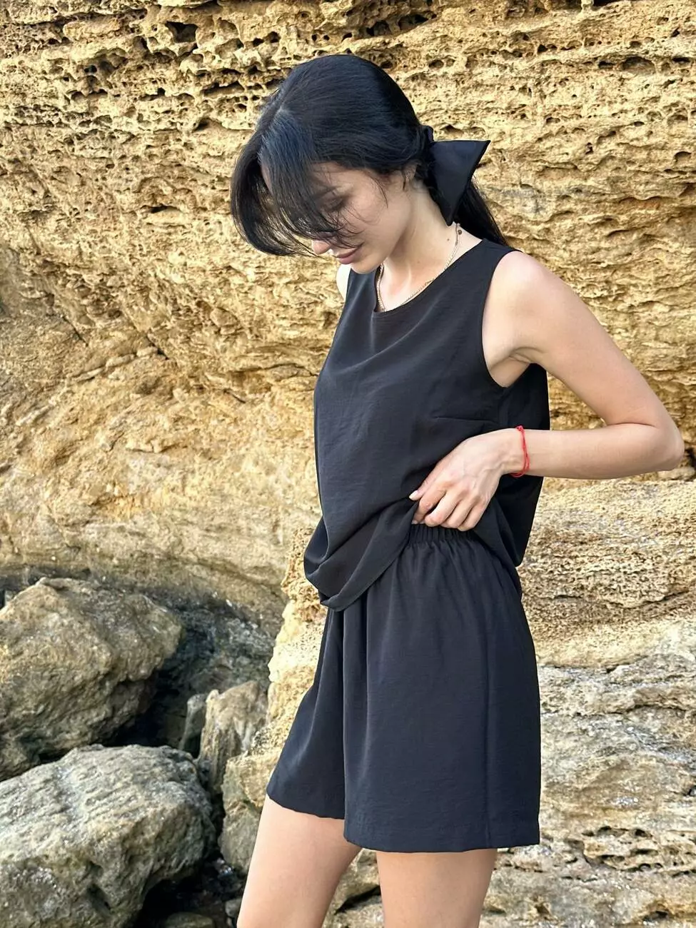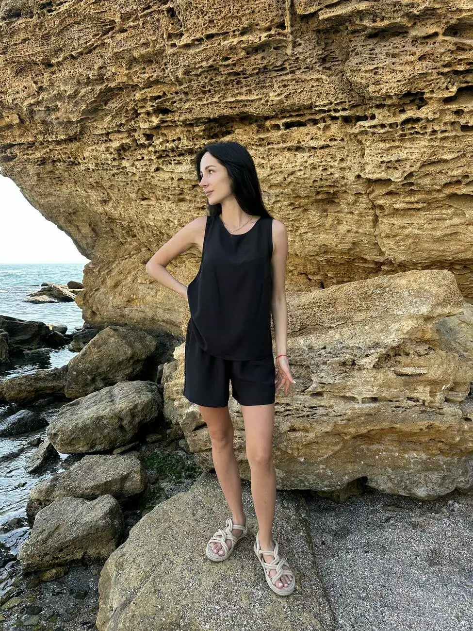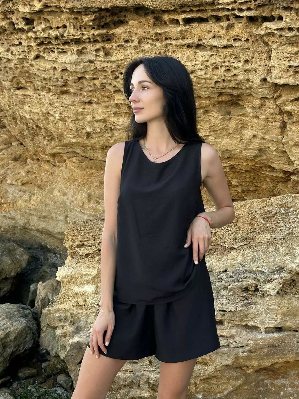 Базовий чорний комплект з колекції LUMIA — стильне рішення для літа, яке поєднує комфорт, елегантність і універсальність.