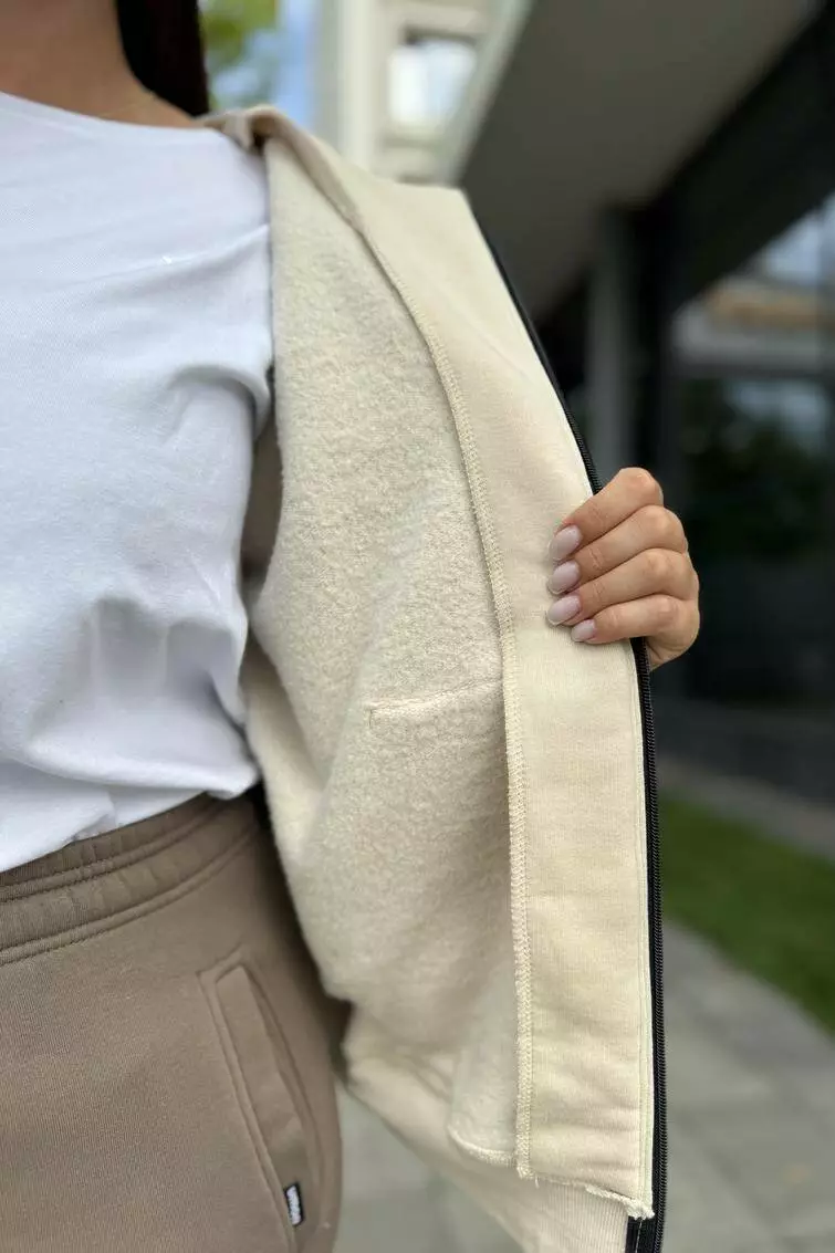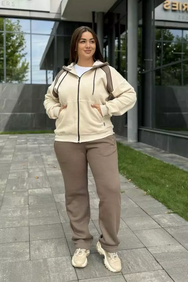 Жіночий теплий костюм на флісі: кофта з капюшоном на замку та прямі