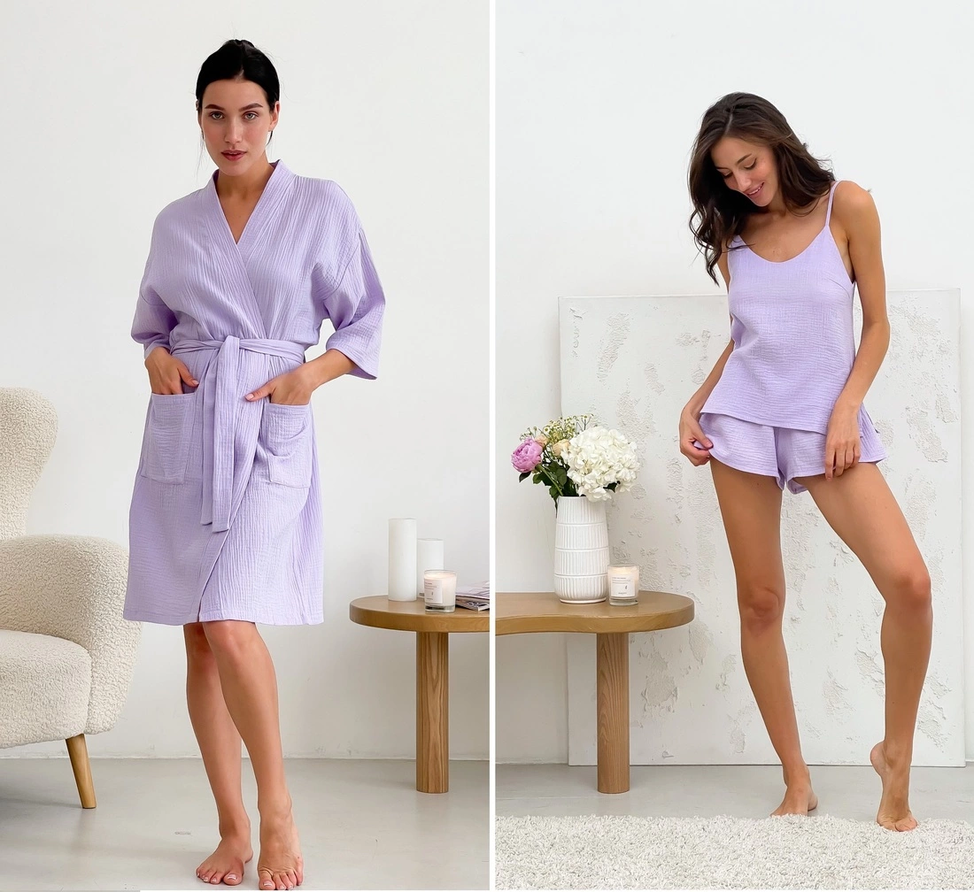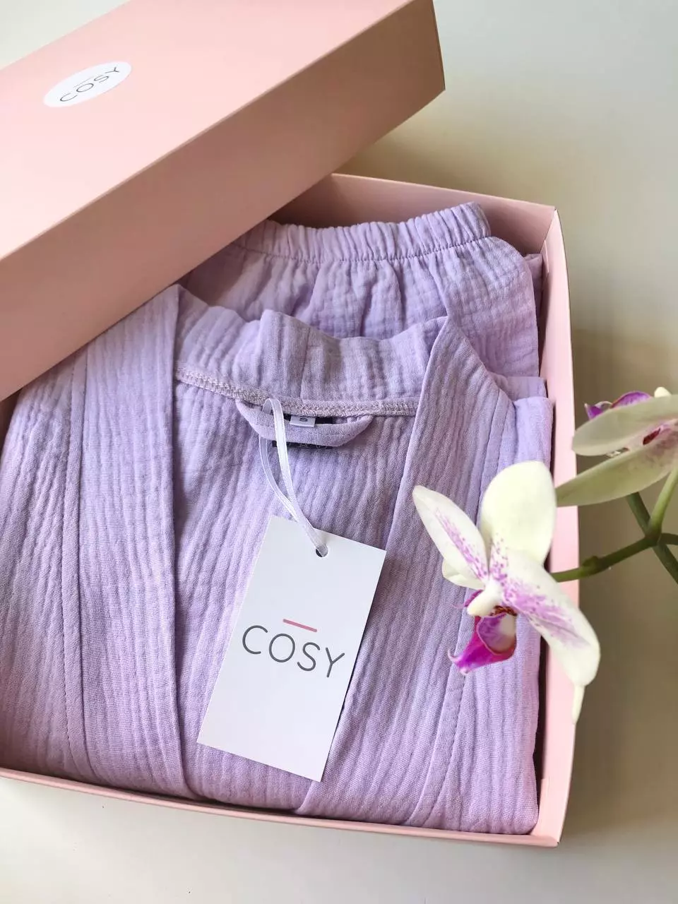 Жіночий Мусліновий комплект халат+піжама COSY в подарунковій упаковці, лавандовий