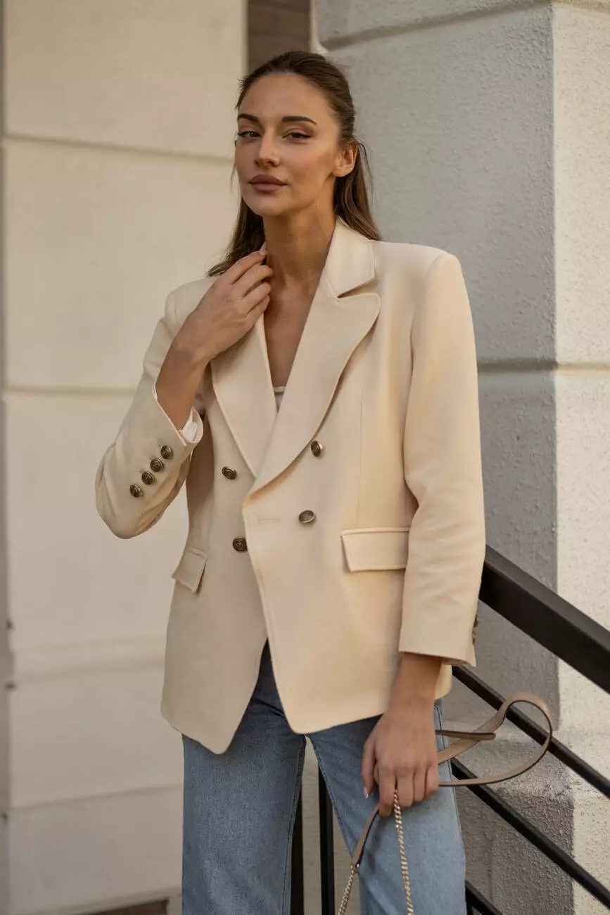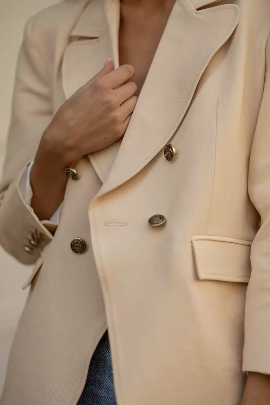 функціональні кишені та елегантні ґудзики додають жакету особливий