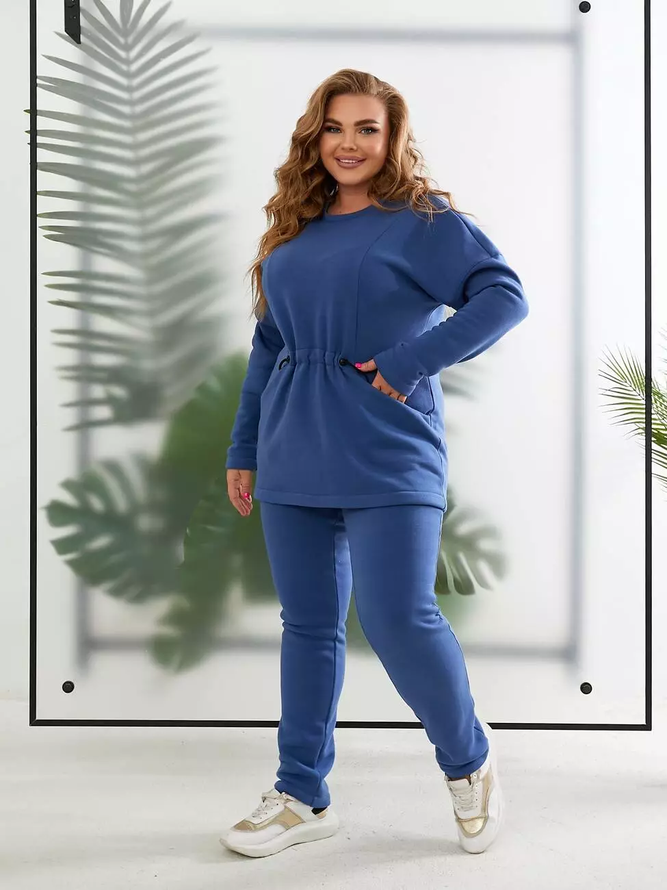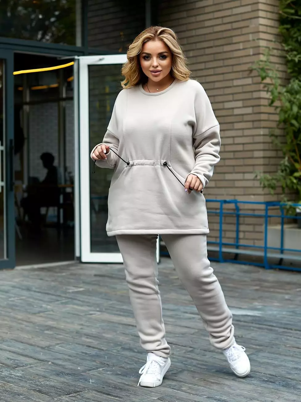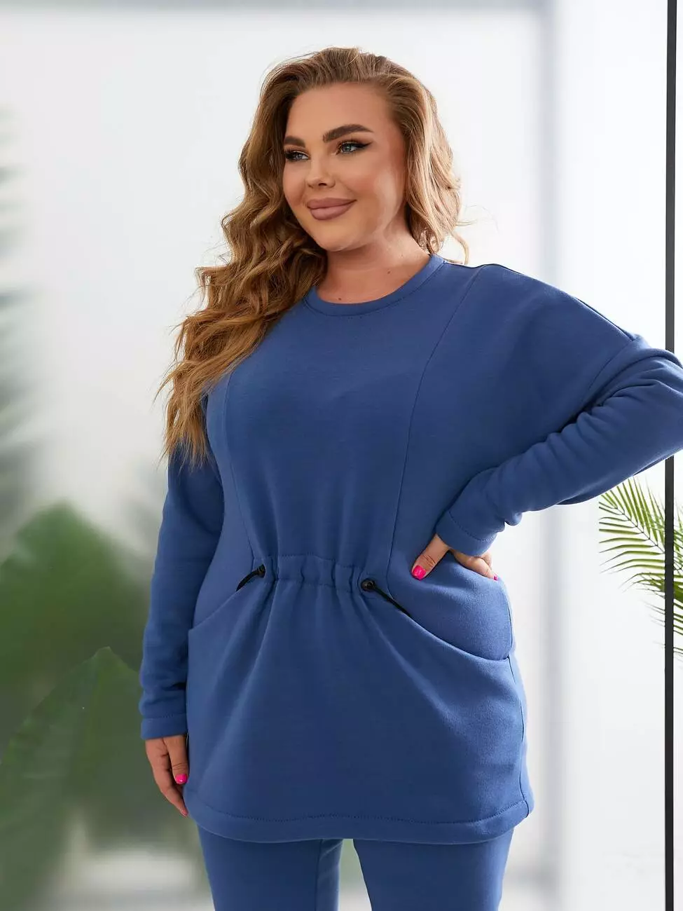 Жіночий прогулянковий костюм, туніка і штани, синій, пудра, бежевий, 48/50, 52/54, 56/58 розміри